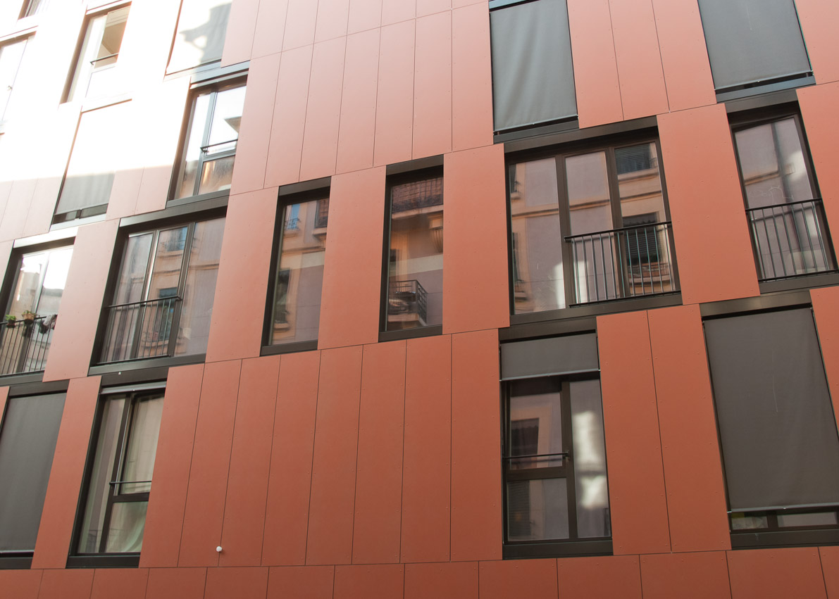 Rue des Pavillons Genève, logements pour étudiants de la Cigüe. Batiment Minergie-P-Eco. Insufflation Steico Zell 200mm.